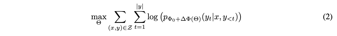 먼저 \(\Phi\) 로 parameterize 되어있는 pretrained autoregressive language model \(P\Phi(y|x)\) 이 주어졌다고 가정한다. \(P\Phi(y|x)\) 는 GPT와 같은 일반적인 multi-task learner일 수 있다.
